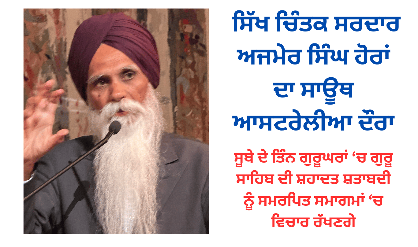 ਸਿੱਖ ਚਿੰਤਕ ਸਰਦਾਰ ਅਜਮੇਰ ਸਿੰਘ ਸਾਊਥ ਆਸਟਰੇਲੀਆ ਸੂਬੇ ਦੇ ਤਿੰਨ ਗੁਰੂਘਰਾਂ ‘ਚ ਗੁਰੂ ਤੇਗ ਬਹਾਦਰ ਸਾਹਿਬ ਦੀ ਸ਼ਹਾਦਤ ਦੇ ਸਬੰਧ